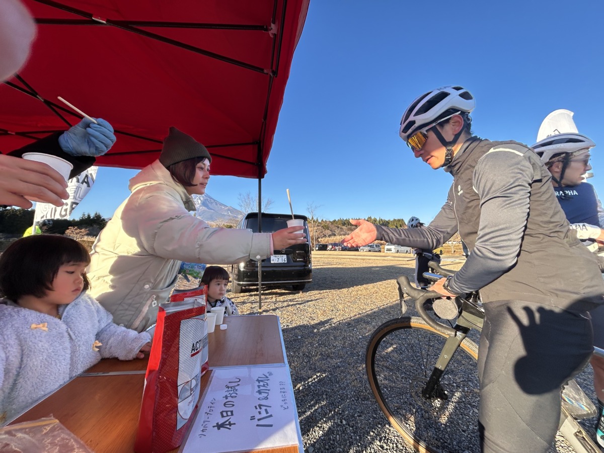 さて、この日のライドを支えたのが、岩倉エイド、勢子辻エイド、須津エイド、駿河湾展望エイド、愛鷹エイドの計5カ所のエイドステーションだった。富士市の特産品とサイクリスト向け補給食がバランスよく配置され、補給のたびに表情が戻る参加者の姿が印象的だった。厳しい区間を越えるたび、「次のエイドまで行こう」が「次の景色を見に行こう」へ変わっていく。エイドは単なる補給地点ではなく、熱量を再点火する“チェックポイント”として機能していた。