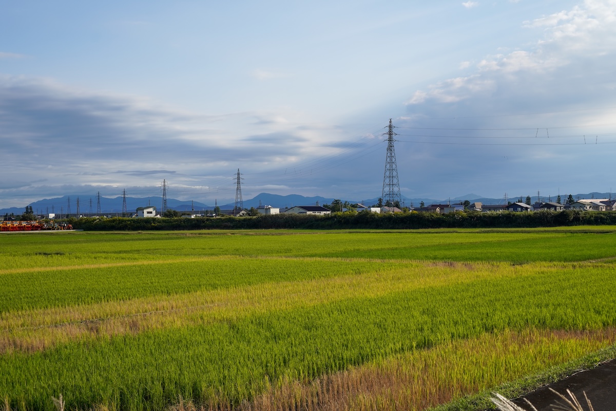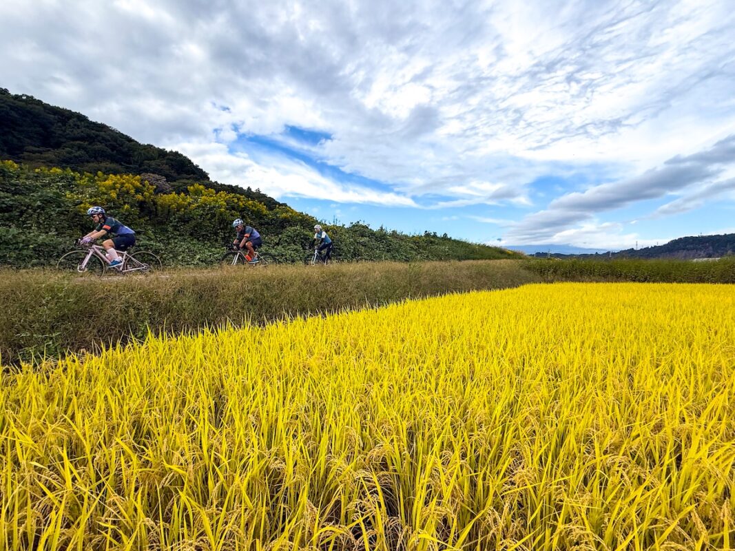 平野部の田園風景。4日間のルート沿いには米の産地も多く、美しい景色を見られる