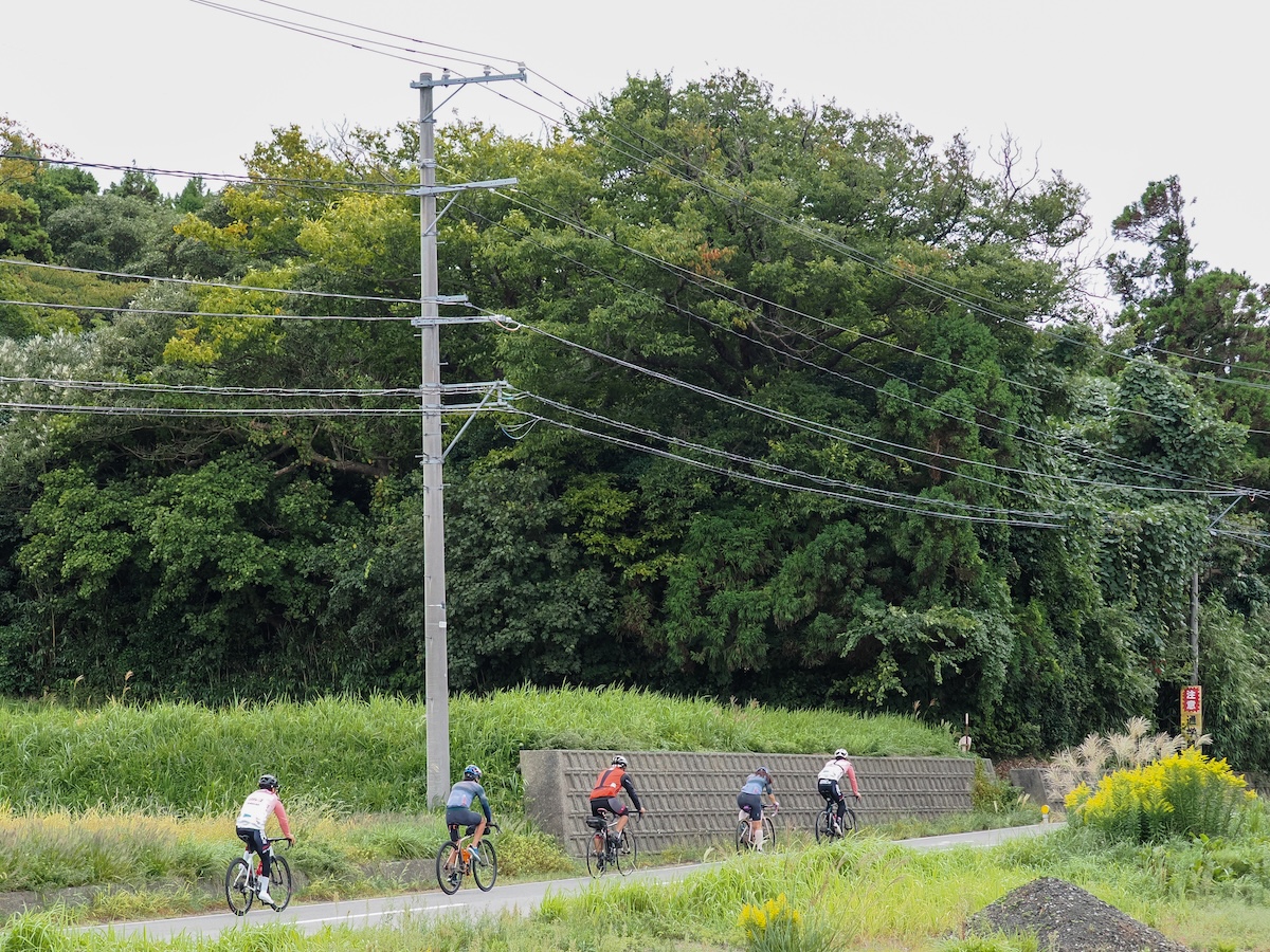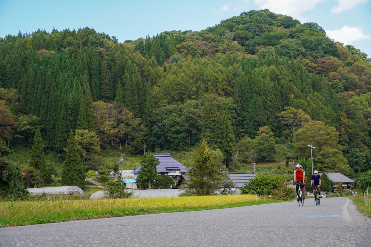 序盤は上越市の平野部をグループで走っていく。左右に田園が広がっていて稲穂がたなびく。黄金KAIDOの由来は4つの金山にちなんだものだが、稲穂の美しい景色もある意味、黄金KAIDOの「金」の一つといえる。南に向かって20kmほどペダルを漕ぎながら、妙高高原へと続く北国(ほっこく)街道を使って野尻湖へ。標高654mまで上る坂道は、平均勾配こそ5%に満たないものの距離は25kmと長めだ。