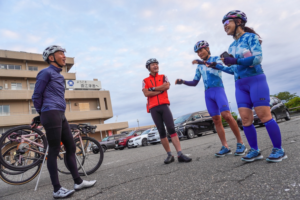 2日目は、直江津港(新潟県上越市)から信濃大町駅(長野県大町市)までの133kmのルート。獲得標高は2,779mで、この日が最も上りが多い。各自が自由に走るフリーライドで、ゲストとして元アテネ五輪ロードレース代表の田代恭崇さんが加わった。ときに一緒に、ときにそれぞれがマイペースに走りながらゴールを目指していく。