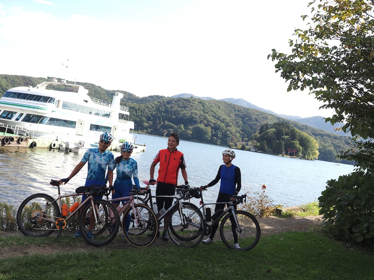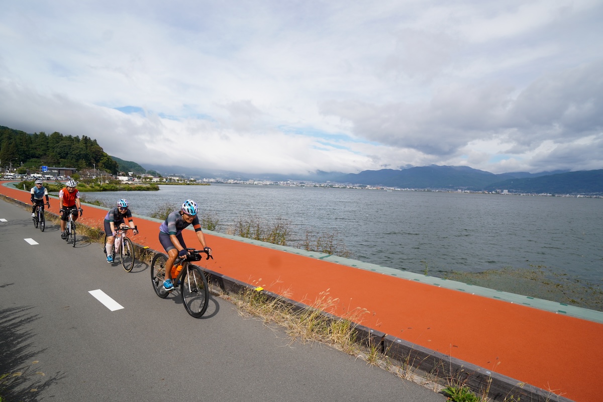 諏訪湖で待ち合わせして4人で湖畔沿いを気持ちよくサイクリング