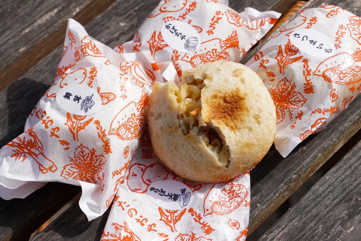旅の駅 鬼無里のすぐ近くにある、いろは堂 鬼無里本店のおやき。もちもちの食感がおいしい