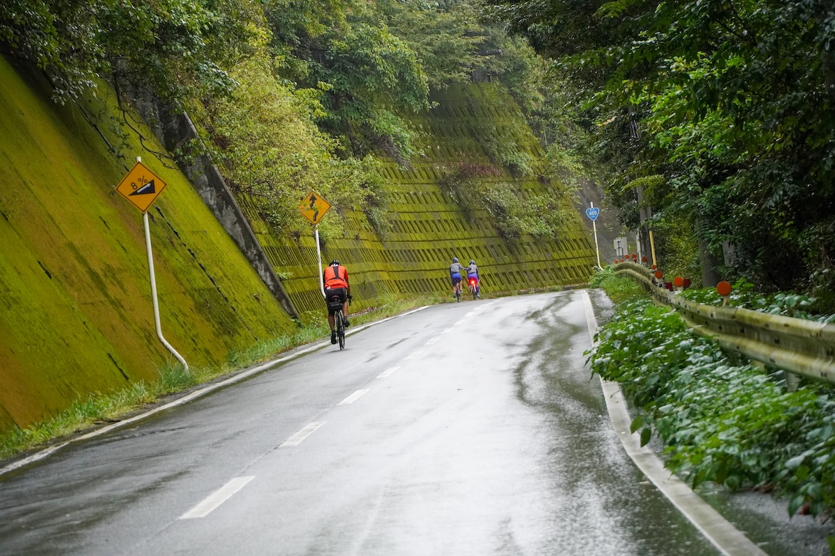 野尻湖でひと息入れたのち、北国街道から信濃信州新線(県道36号)に入って戸隠山と飯縄(いいづな)山の間を抜けていく。木々が生い茂る静寂な空間に包まれたヒルクライムはどこか神秘的でもある。戸隠(とがくし)神社に至る約20kmの道中には勾配10%超の区間がいくつかあり、「この上りが29kmも続くとさすがに脚にきますね」と山田さんは苦笑する。4日間の行程のなかで、ここが一番印象に残っていると振り返る。