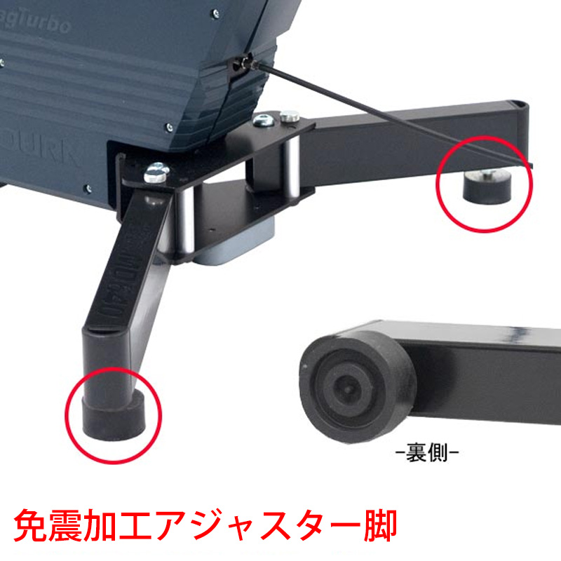 本体重量は13.0kgと、ダイレクトドライブ式としては比較的軽量で持ち運びもしやすい。脚部は折りたたみ可能で、収納時には幅210mmとコンパクトになるため、使用しない時は家具の隙間などに収納できる。