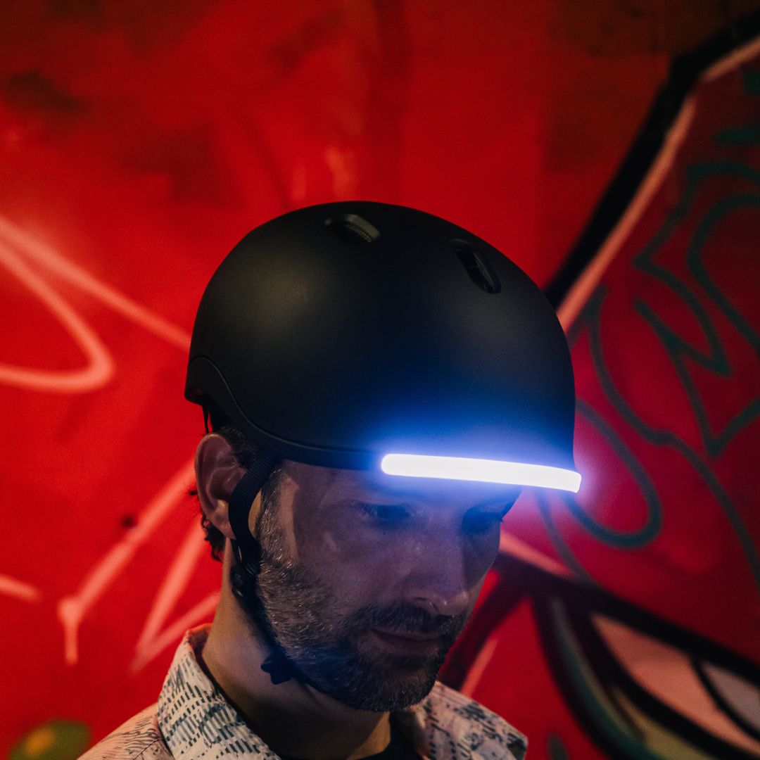 - 前後にウインカー機能付きのLEDライトを搭載した、安全性とスタイルを兼ね備えたスマートヘルメット