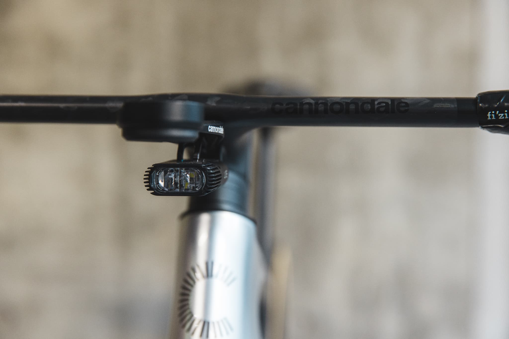 5代目シナプス最大の特徴とされたのが、スマートセンスという前後ライトとガーミンのリヤビューレーダーを統合した安全デバイスだった。ダウンチューブに設置されたバッテリー1つで前後ライト、リヤビューレーダーのディスプレイとセンサーに電力を供給し、キャノンデールアプリを介して、ライトの点灯・点滅パターン、レーダーの設定、バッテリーの状態などを一元管理する。