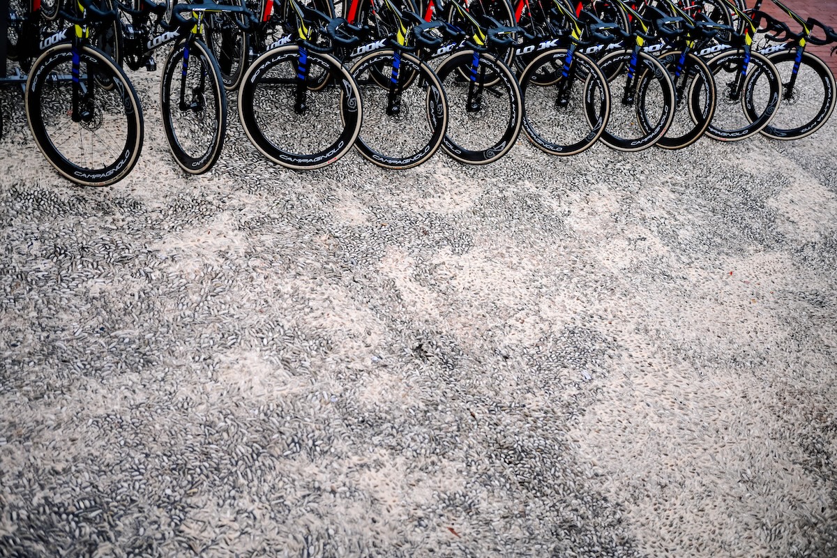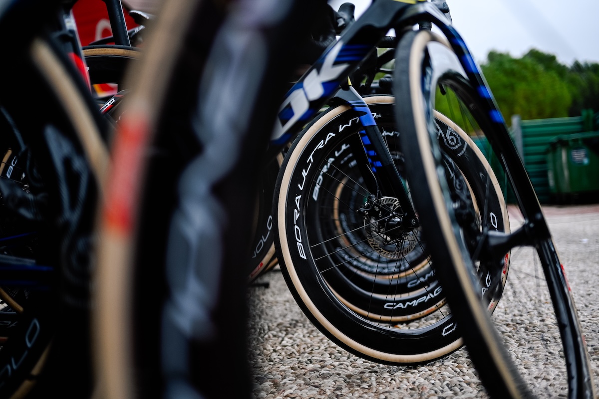 コンポーネントに加え、ホイールも引き続きカンパニョーロがサポートする。選手たちには最高峰モデルである「Bora ULTRA WTO」シリーズが供給され、コースプロフィールに応じて45mmと60mmのリムハイトが使い分けられる。ハンドメイドのウルトラライト・カーボンリムと、アイコニックなG3スポークパターンを組み合わせたこのホイールは、プロトン内でもベンチマークとなる剛性とパワー伝達効率を誇る。