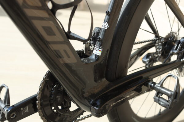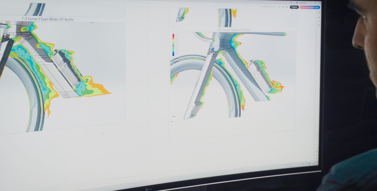 設計はゼロからやり直された。チューブ断面、フォーク形状、ヘッド周辺、ダウンチューブ位置、シートステー接合位置まで全面刷新。数百回のCFD解析で気流分離を抑え、横風時のセーリング効果も考慮した設計となっている。