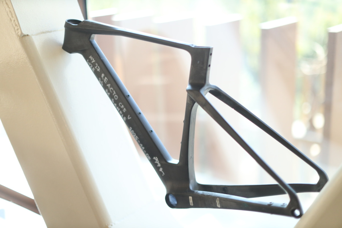 国内ではいまのところ発売予定はないが、ハイエンドモデル「REACTO ONE」が、ドイツTOUR誌の風洞試験(45km/h一定走行条件)において196Wを記録した。これは前世代REACTO IV TEAMの211ワットから約15ワット削減に相当する。数値上は約2.5%の改善だが、エアロ性能が高度に煮詰まった現代ロードバイクにおいて、この差は決定的だ。