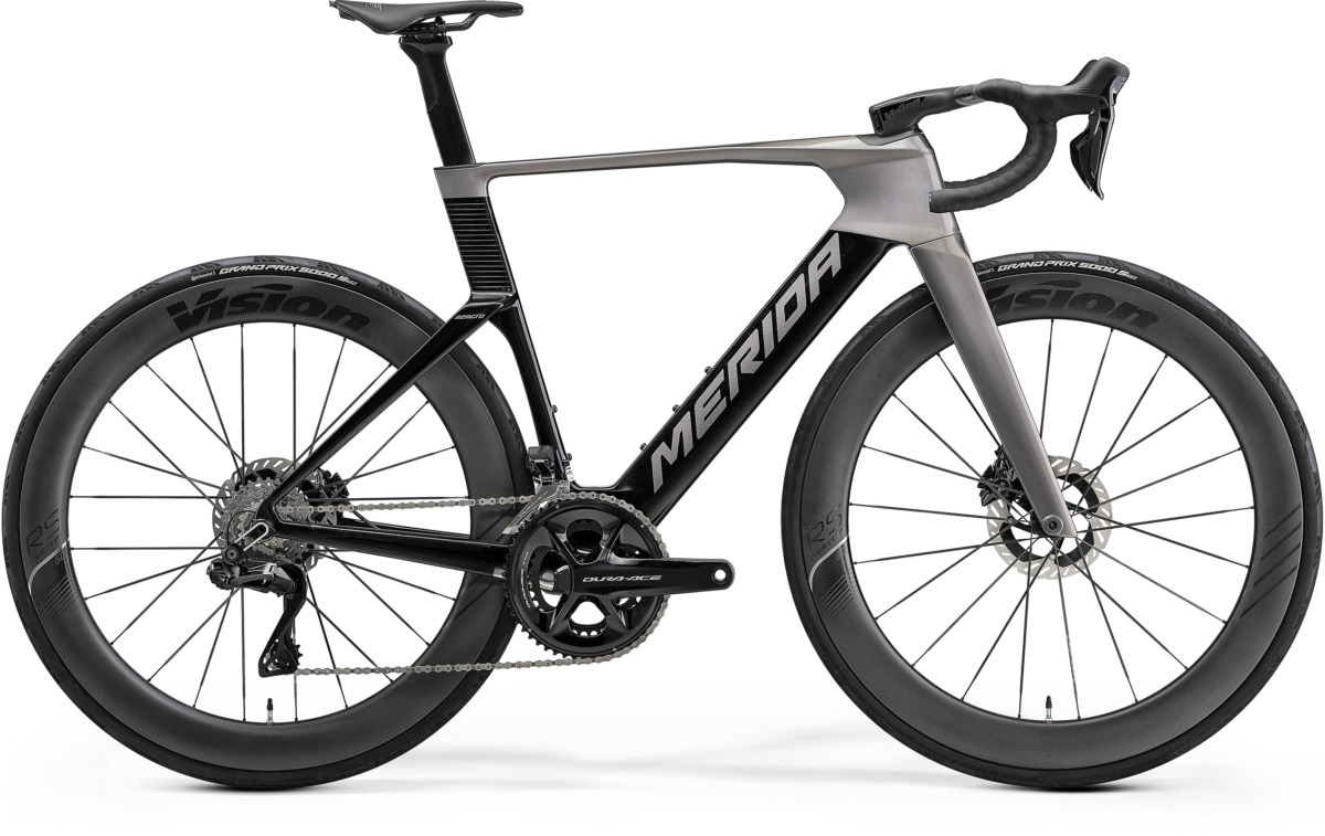 最上位モデルとなるREACTO ONEは「最速志向」のモデルで、45km/h走行時の空力性能は196Wとシリーズ中で最も優れた数値を示す。ハンドルにはMERIDA TEAM CW 1P一体型コックピットを採用し、コンポーネントはShimano Dura-Ace Di2を搭載。完成車重量は約7.4kgで、空力性能を最優先にした構成となっている。