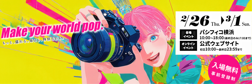 最新機材をチェックしつつ、トークショーで撮影のモチベーションを高め、充実の併催企画を楽しむ。今週末のライドの目的地として、あるいは家族とのお出かけ先として、パシフィコ横浜に足を運んでみてはいかがだろうか。入場は無料だが、ウェブからの事前の来場登録が必須となるため早めの手続きをおすすめしたい。