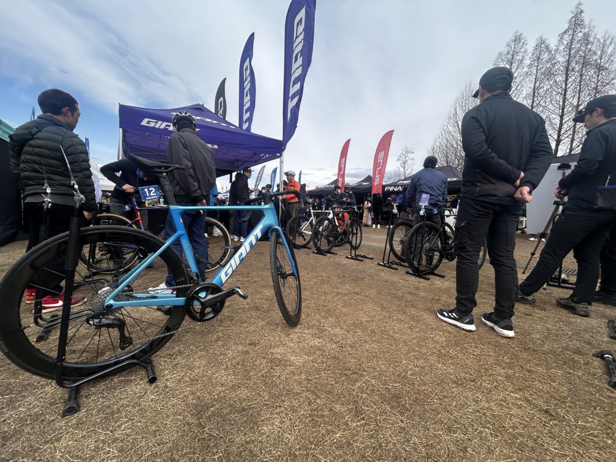 メリダのエアロロード「リアクト」や、ジャイアントの最新エアロロード「プロペル」は来場者の注目を集めた。ジャイアントブースでは事前予約の枠がすぐに埋まる人気となった。