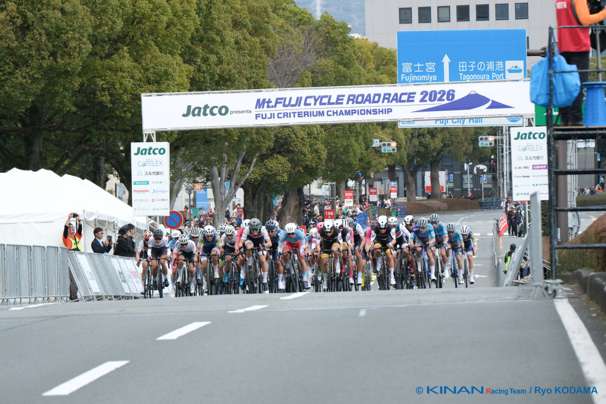 2月28日から3月1日にかけて、静岡県富士市にて「第5回Jatco presents 富士山サイクルロードレース2026」が開催された。メインイベントである富士クリテリウムチャンピオンシップ決勝レースは、大集団でのスプリント勝負となり、山本哲央(TEAM UKYO)が優勝。2位にチームメイトの窪木一茂が続き、TEAM UKYOが圧倒的な強さでワンツーフィニッシュを飾った。