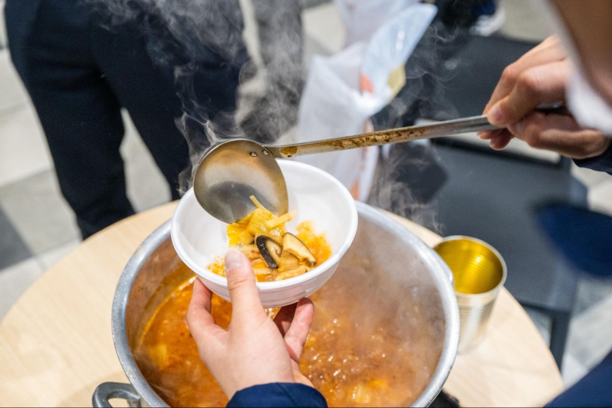 そしてエイドステーションでは、地元の「トコデリキッチン」が調理した郷土料理「そば米汁」が振る舞われた。地元で採れた野菜がたっぷり入った温かいスープが、冷えた参加者の体を優しく温めてくれた。