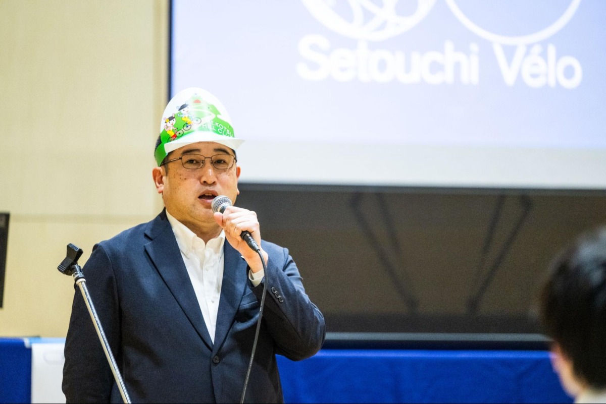続いて、本州四国連絡高速道路の森田真弘取締役常務執行役員(Setouchi Vélo協議会事務局)が挨拶。「徳島県内で初のミーティング開催。加盟団体はこの3年で89団体まで広がり、島根県の参加によって中国・四国全域を網羅した」と協議会の発展を報告するとともに、安全啓発活動「シェア・ザ・ロード」への協力を呼びかけた。