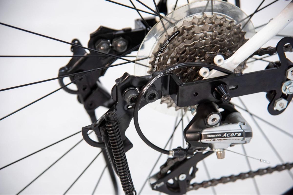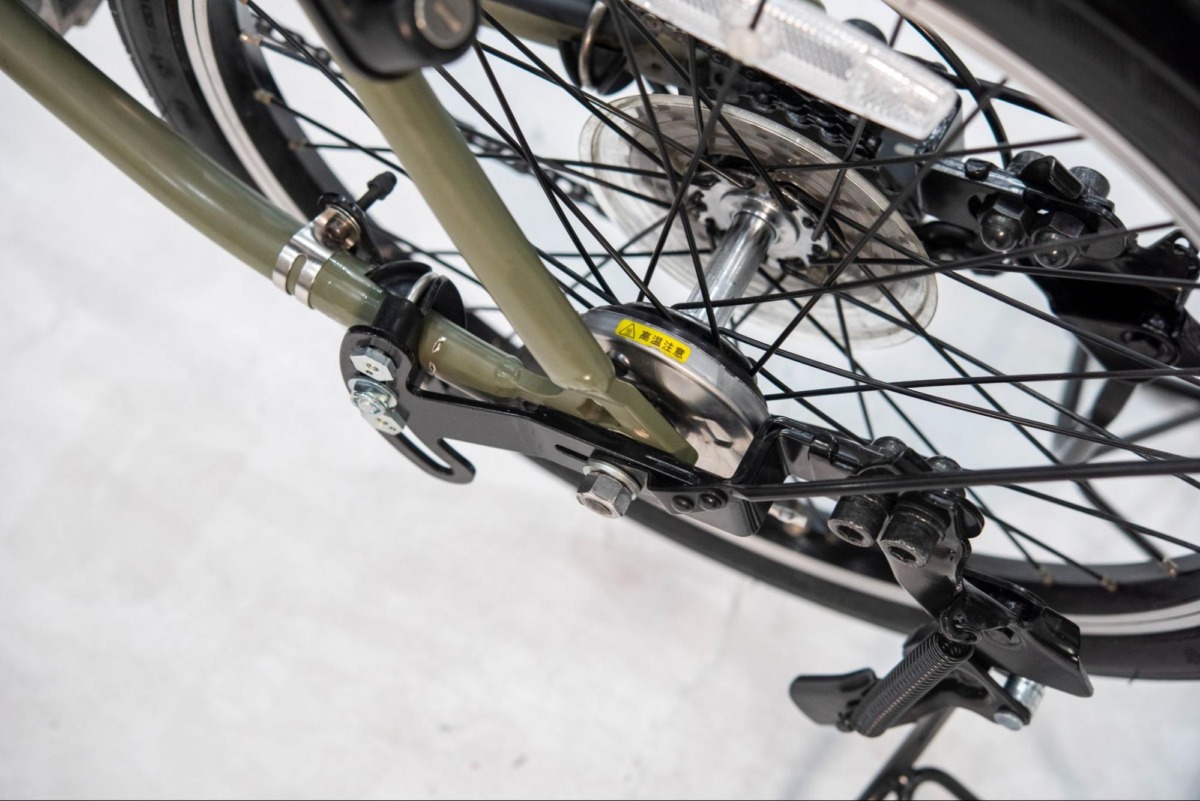 後輪のハブの後方へオフセットした仕組みでスタンドアダプターが装着できることにより、クイックリリース式のクロスバイクの変速機を問題なく機能。チェーンステーに台座が固定されていることにより後輪の脱着時にもスタンドアダプターを外さなくて良いのが特徴。