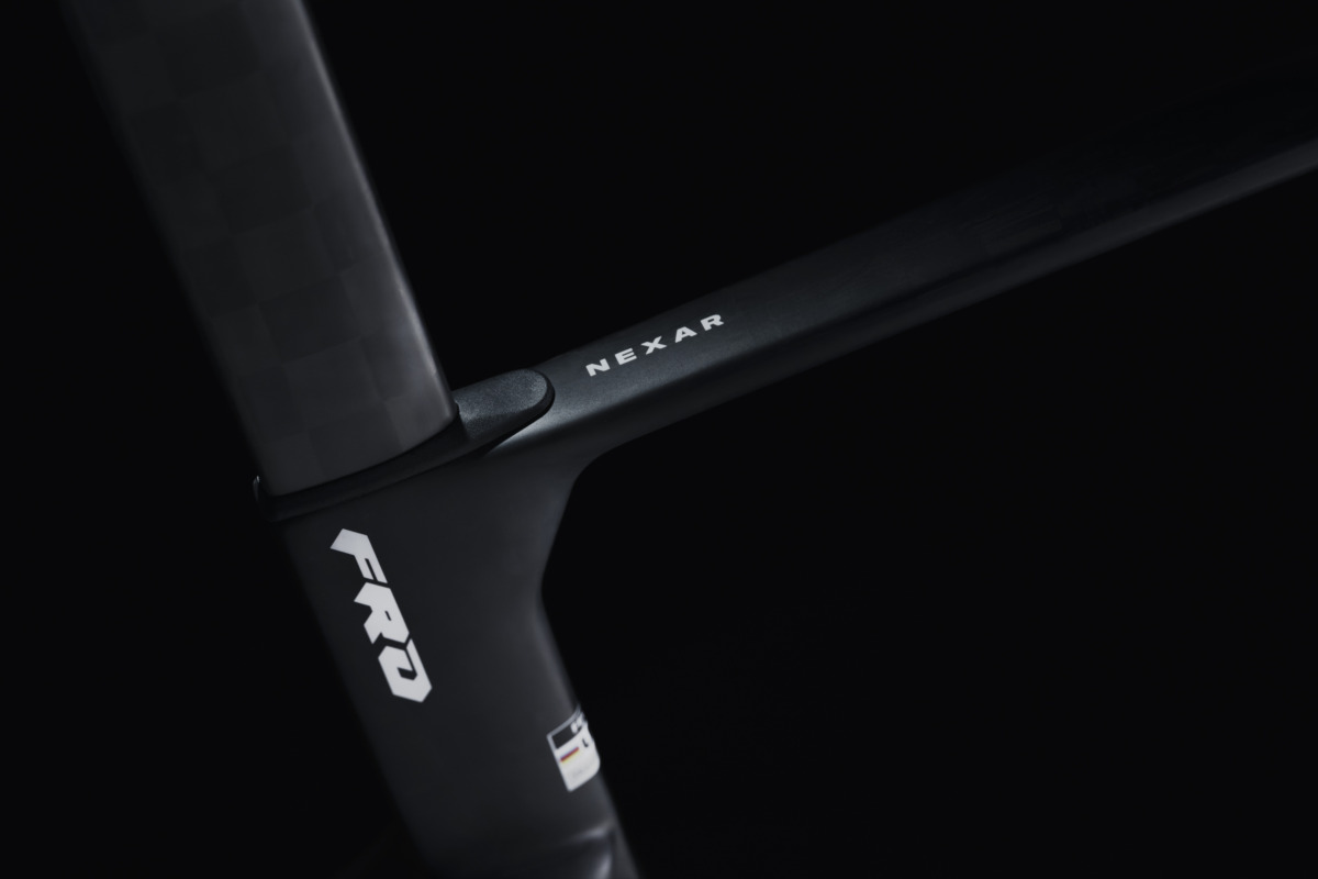 トップグレードである「NEXAR FRD」のフレーム重量は、サイズ54でわずか800g。T800、T1000、T1100というハイモジュラスカーボンを適材適所に配置し、前世代のAR FRDと比較して約300gもの大幅な軽量化を達成している。