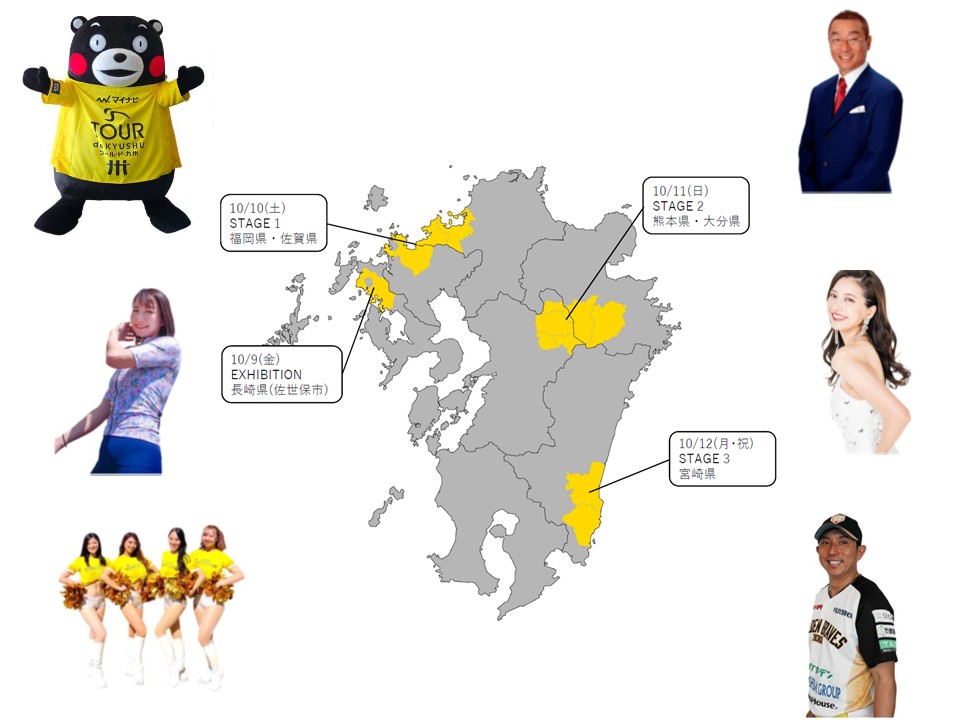 さらに、大会を盛り上げる「応援隊長」として、熊本県営業部長兼しあわせ部長の「くまモン」が就任。応援隊員には、熊本県出身で2024ミス・インターナショナル日本代表の植田明依さんや、九州を中心に幅広く活躍するサイクリングナビゲーターのBekiさん、そして元NFLチアリーダーの曽我小百合氏が率いる「応援チアリーダーズ」が就任し、沿道や会場から選手たちの果敢な走りを後押しする。
