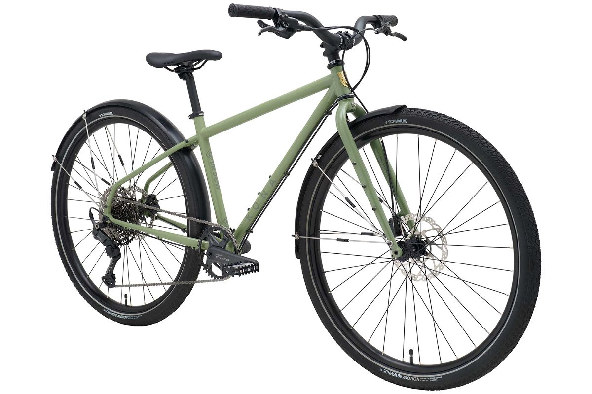 大きなトピックは、足回りが29×2.0インチのWTB GROOV-Eタイヤへと大型化されたこと。これにより、歩道の段差や河川敷の砂利道もバターを塗ったように滑らかに走り抜けることができる。また、700mm幅・70mmライズの新しい「KONA Commuterライザーハンドルバー」が、リラックスしつつも自信に満ちたハンドリングを約束する。