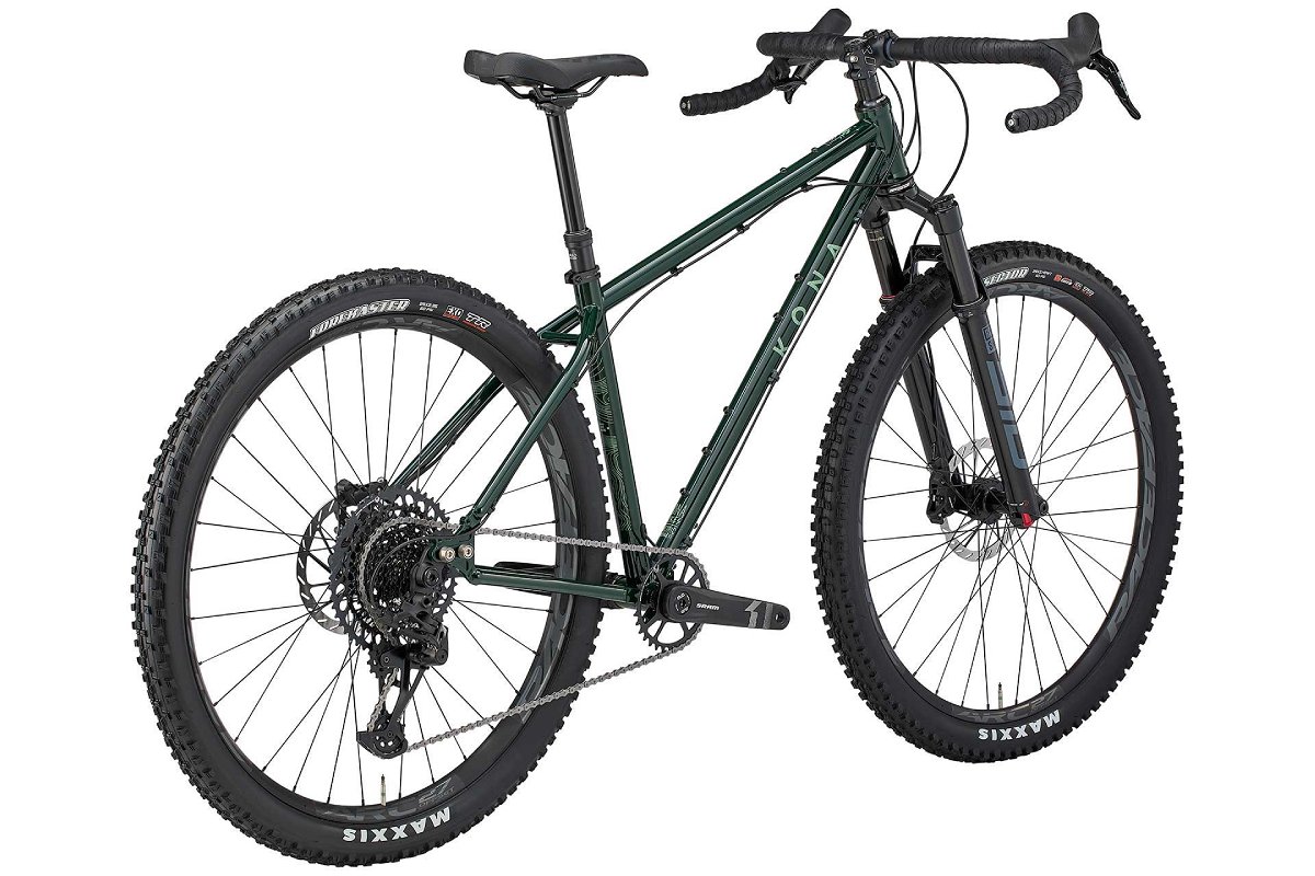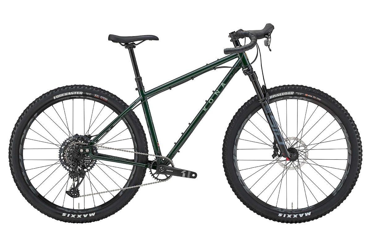 足回りには幅広なRaceFaceリムとグリップ力の高いMaxxisタイヤ(フロント29×2.4″、リア29×2.4″)をアッセンブル。また、あらゆる箇所にボトルケージやアクセサリー用のダボ穴を備え、積載能力も抜群だ。KONAオリジナルのスライドエンドとUDHハンガーの組み合わせにより、シングルスピード化にも対応するなど、拡張性も申し分ない。ゴロゴロした裏道から秘境のシングルトラックまで、あらゆるアドベンチャーを現実にする「何でもあり」の1台に仕上がっている。