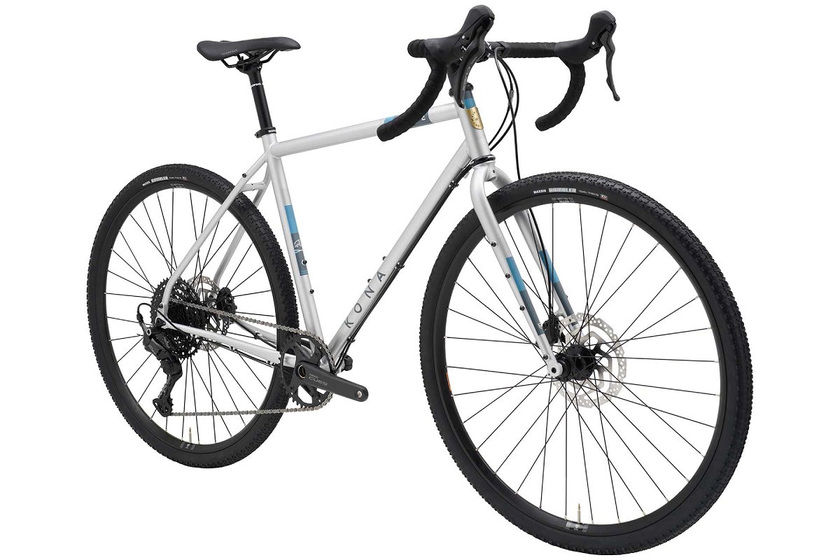 伝統のクロモリの魂はそのままに、最新ジオメトリーへと進化した「何でも屋」。新型Shimano CUES 1×10速ドライブトレインと油圧フラットマウントブレーキへと性能をアップデート。16度にフレアしたKonaグラベルハンドルバーとMaxxis Rambler 700x40cタイヤが、あらゆる路面でのコントロール性を高めている。