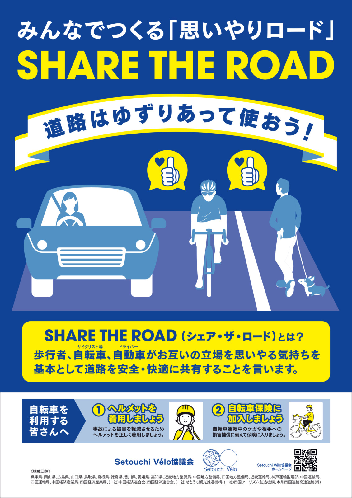 春の本格的なサイクリングシーズン。瀬戸内エリアを訪れるサイクリストはもちろん、全国すべてのライダーが今一度交通ルールを確認し、周囲を思いやる「シェア・ザ・ロード」の精神で安全なライドを楽しんでほしい。