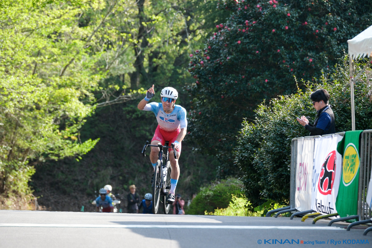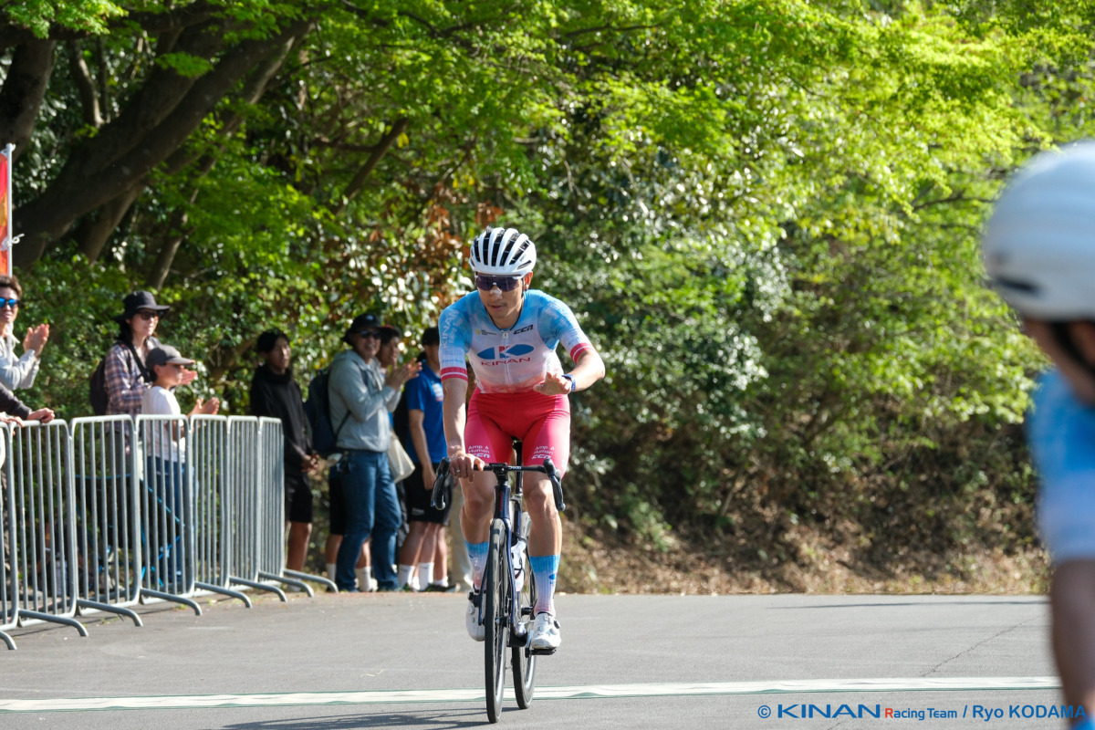 最終盤のラスト1周、先頭グループに草場と新城の2名を送り込む理想的な形を作ったキナンは、最後の登坂区間で新城が勝負のアタック。合流の時点で脚を使っていたという新城だったが、そのまま後続を振り切り、見事な独走でフィニッシュラインを駆け抜けた。