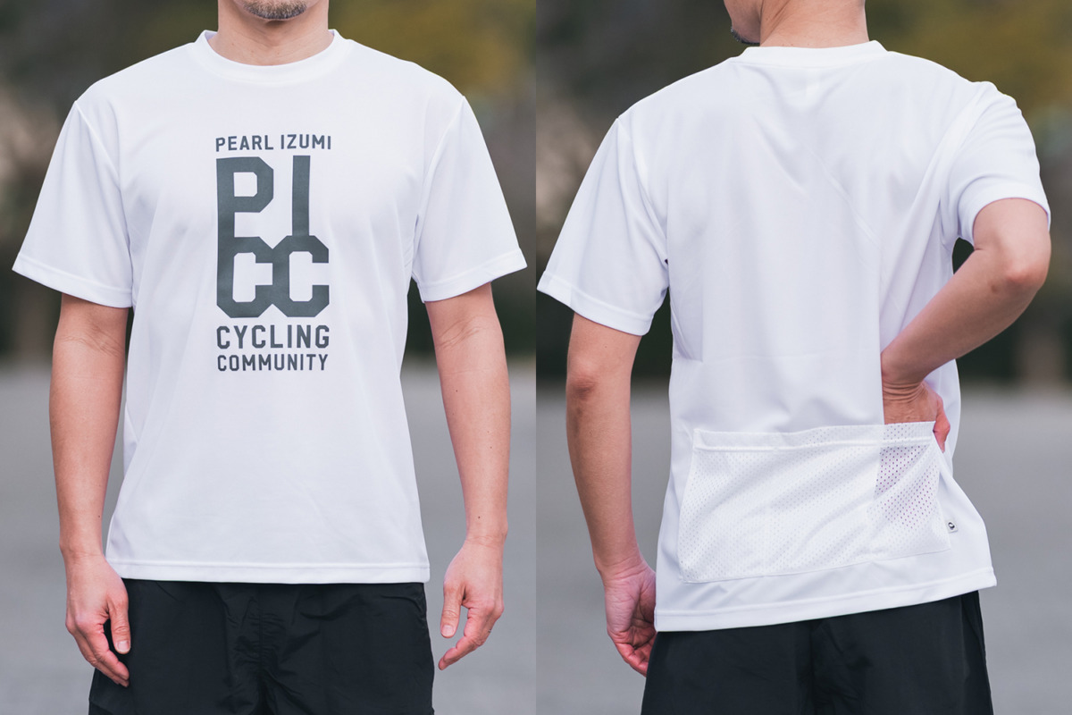 さらに、ライド前の移動や日常着、あるいはカジュアルなサイクリングに最適な「PICC バックポケット Tシャツ」も登場。汗処理に優れたポリエステル素材を使用しており、背中には便利な3バックポケットを備えているため、普段着感覚でありながら自転車用としての利便性も確保している。