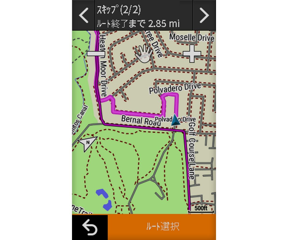 ナビゲーション中、ルートを外れた際にナビの一時停止とオフコース警告の停止が可能に。再度ルート上に戻れば、デバイスは目的地までのルートを再表示。