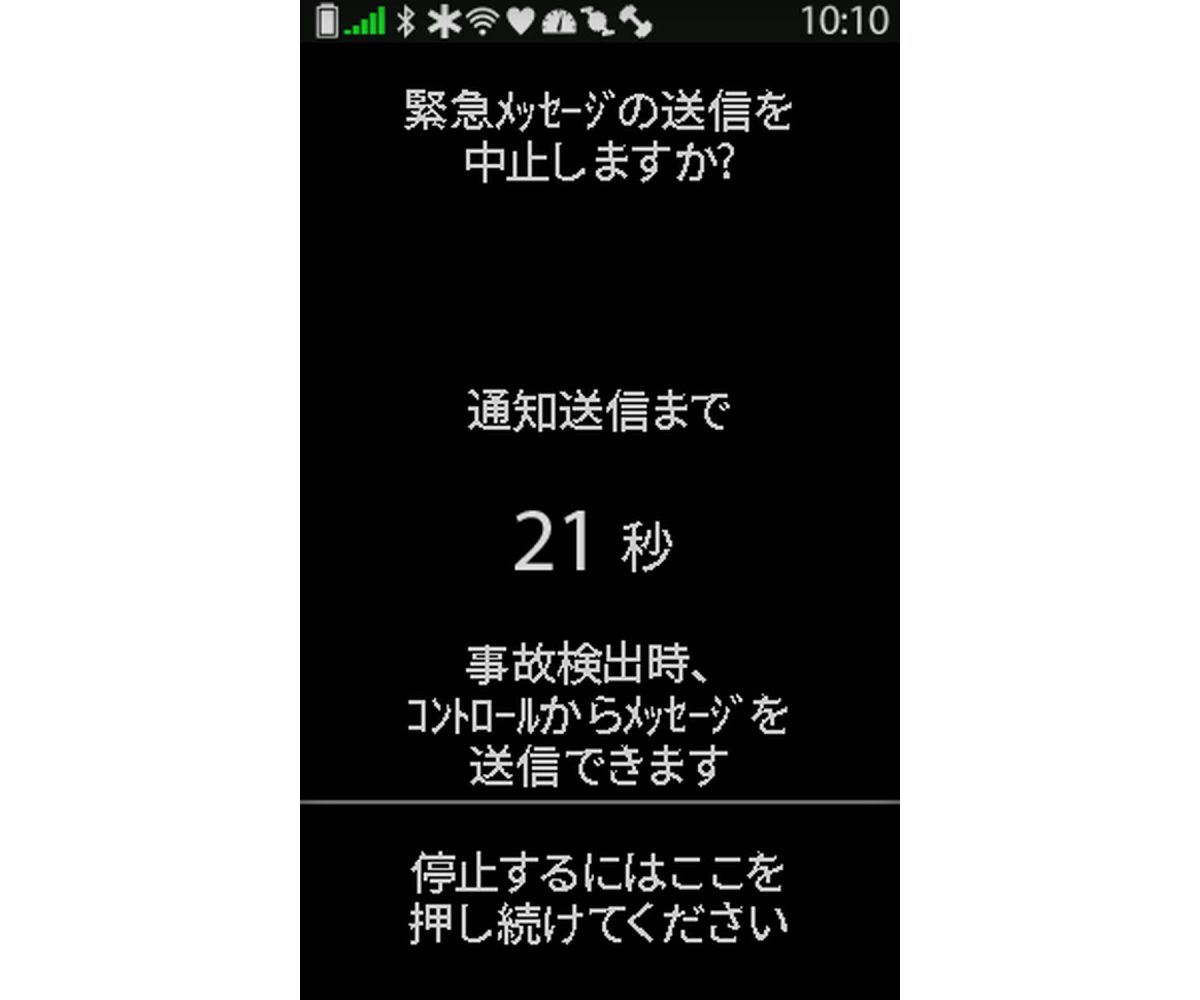 デバイスが衝撃を検知すると、登録された緊急連絡先にアラートを送信。また、手動でメカトラブルなどの救助要請の送信も可能。※Bluetooth対応スマートフォンとの接続が必要。