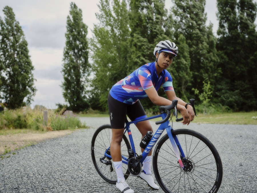 女性のサイクリングを祝福する特別なコレクションに含まれる限定版コア ジャージには、何千というサイクリストの姿から着想を得たデザインが施されています。