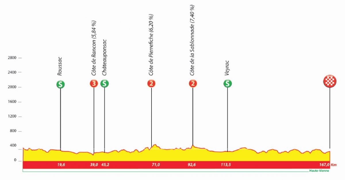 21日に開催された最終ステージとなる第4ステージは、サン=パルドゥー湖(Lac de Saint-Pardoux)からリモージュ(Limoges)までの167kmのステージ。前半に大きな周回コースを1周し、その後リモージュの12.1kmのサーキットを3周回してフィニッシュを迎えるコースプロフィールでした。