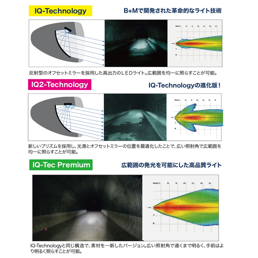・LEDライトをオフセットミラーに反射させるIQ2テクノロジーを採用