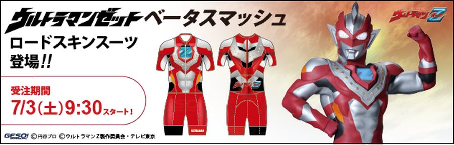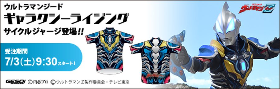 GESO-WORKSから新製品が登場。夏の新作として、「ウルトラマンジード ギャラクシーライジング サイクルジャージ」、「ウルトラマンゼット ベータスマッシュ ロードスキンスーツ」が、7月3日9:30より受注販売される。以下、プレスリリースより。
