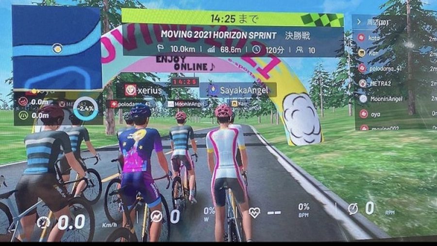 バーチャルサイクリングは実際に自転車をこぐことで画面内のアバターがリアルな景色の中を走る、室内で出来るスポーツ。ゲームとしてコロナ禍で注目されておりこの「MOVING 2021」はスポーツ庁をはじめ、多数の自治体やメディアの後援を受けながら開催されている。