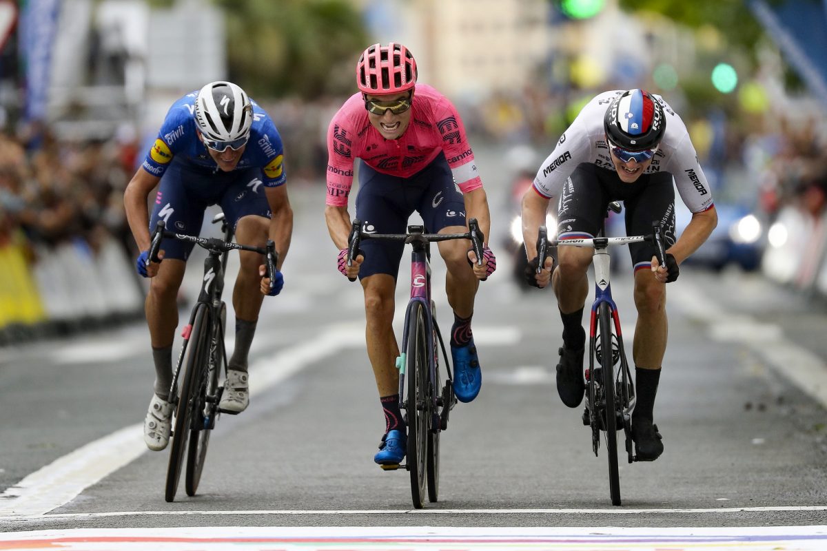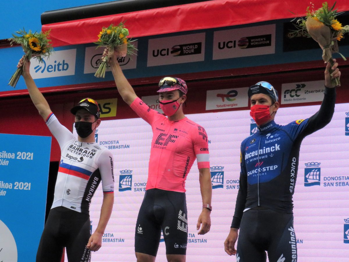 ゴールまで約10kmほどになって、ニールソン・ポーレス(EFエデュケーション・NIPPO)とマテイ・モホリッチ(バーレーン・ヴィクトリアス)そしてミッケルフレーリク・ホノレ(ドゥクーニンク・クイックステップ)とロレンツォ・ロータ(アンテルマルシェ・ワンティ・ゴベールマテリオ)の4人が抜け出すと、途中で転倒したロータを除く3人が、サンセバスチャンの市街ですプリント勝負をすることになった。