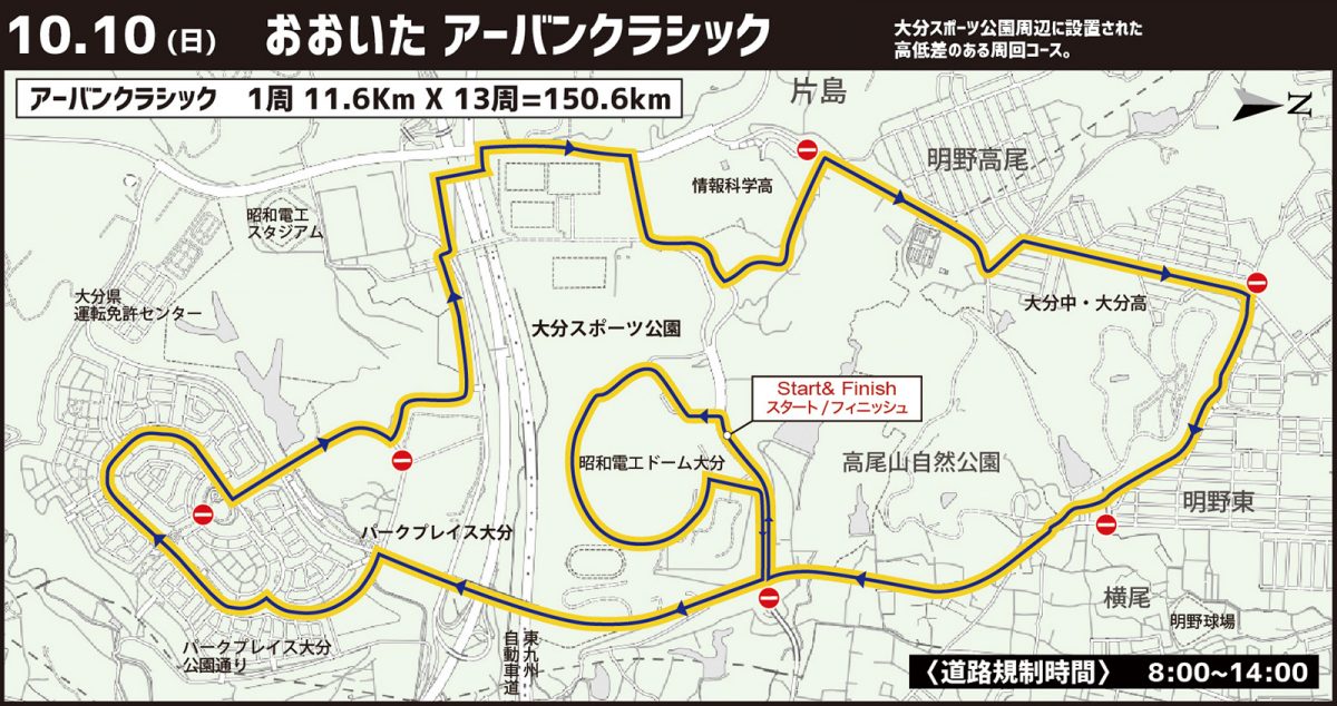 大分スポーツ公園周辺特設コース(周回/11.6km時計回り)
