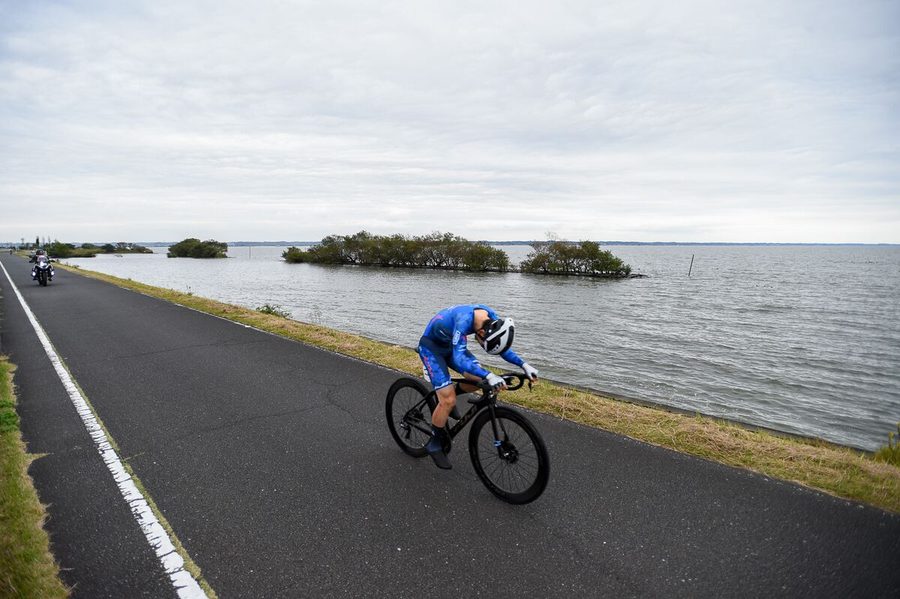 今年初開催となる「かすみがうらタイムトライアル」。日本で2番目に大きい湖・霞ヶ浦の湖畔にある歩崎公園をスタート・フィニッシュとする1周4kmの公道コースを新たに設定しての個人タイムトライアルが行われた。