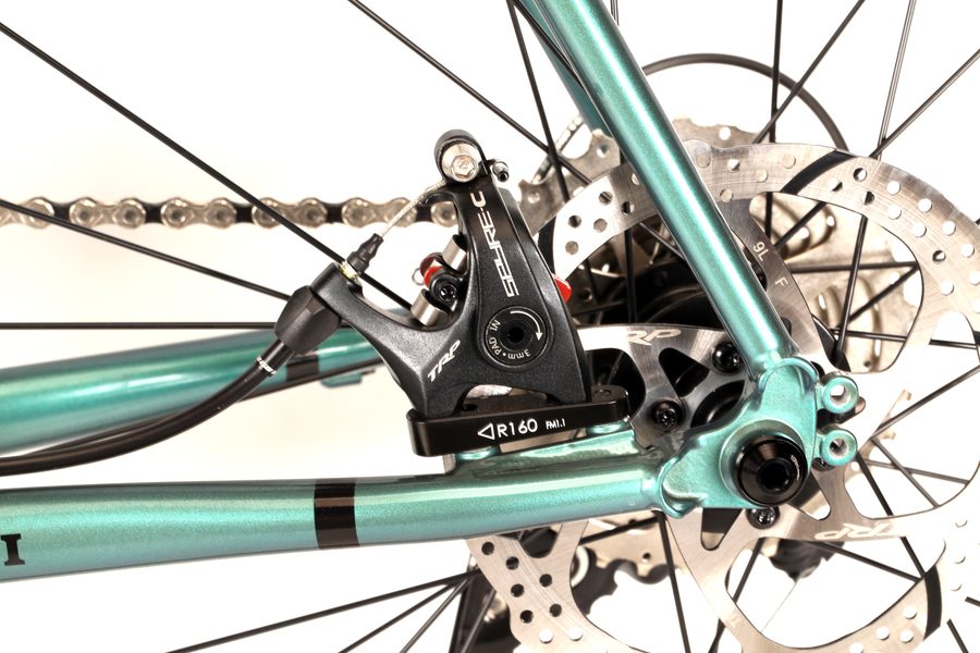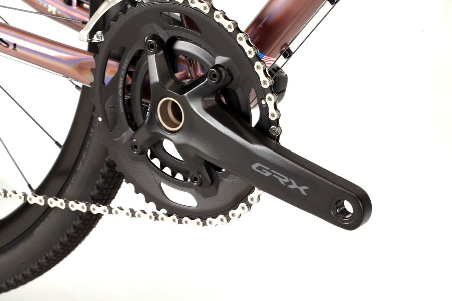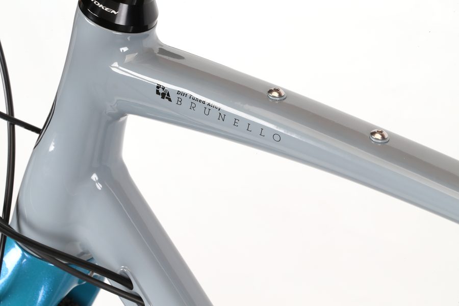 ブルネロは上級グラベルライダーをも満足させることができる軽量アルミフレーム、カーボンフォーク、 40mm幅のワイドタイヤにも対応したクリアランスをもち、シマノGRXコンポーネント22段のギヤを装備。 ツーリングやシクロクロスもハイレベルで楽しめます。