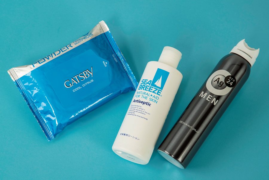 国内ではよほど過疎地に行かない限りコンビニや商店があるし、輪行で利用する公共交通機関の駅前なら何かしら店があることが多い。コンビニで売られている制汗シートや洗顔シートなどのデオドラント用品を出先で購入し、サイクリング後に使えば汗のニオイをある程度抑えられるだろう。もちろん適当なお店がない場合やデオドラント用品が手に入らなかった場合を想定して、出発前に用意し持参してもいい。サイクリング中にお店で食事をする前にも使えるからだ。