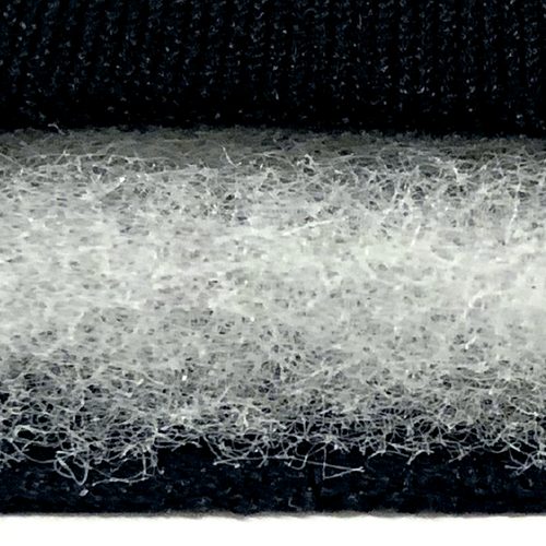 伸縮性の優れる薄手軽量の防風素材の表地の内側に中綿を採用