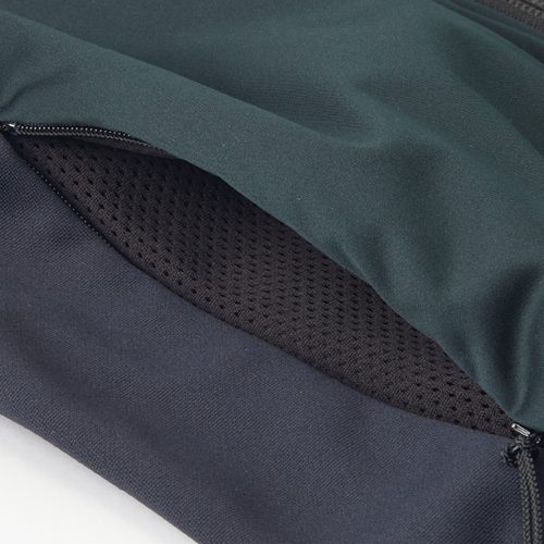 ファスナーを開ければ通気性が高まりムレを防ぐ左右脇のベンチレーションポケット