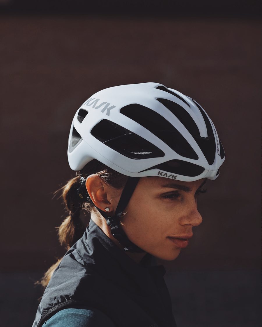 KASKのPROTONEは、そのラインアップのなかで、世界中で人気の高いモデルです。2014年のツール・ド・フランスに合わせてKASKがTeam Sky(現INEOS Grenadiers)のために開発したヘルメットですが、その突出した性能は現在もトップレベルであり、INEOS Grenadiersをはじめ、多くのプロ選手から選ばれています。記憶に新しいところでは、東京オリンピックにおいて、リチャル・カラパス選手(男子ロード)と、アンナ・キーセンフォーファー選手(女子ロード)が、KASK PROTONEとともに勝利を成し遂げました。東京五輪のロードを制した勝利のヘルメットが、KASKのPROTONEなのです。両選手とも、ホワイトカラーのPROTONEを使用していましたが、この度追加されたのは、同じホワイトでも深みのあるマットカラー。ロゴの配置と配色もPROTONEの個性を際立たせます。