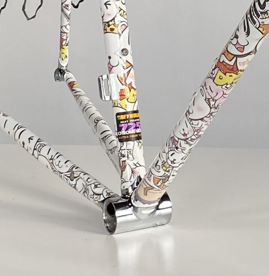 クルマでもあるように「マイバイクもイラストでデザインしたい」というこだわりをもつ方におすすめの痛車加工がスタートしました。デザインをお持ちの方は、JPGまたはイラストレーターのデータで加工させていただきます。料金に関しては、デザインの状態とどのパイプに入れるかによって金額が変わりますので、お気軽にお尋ねください。見積を出させていただきます。