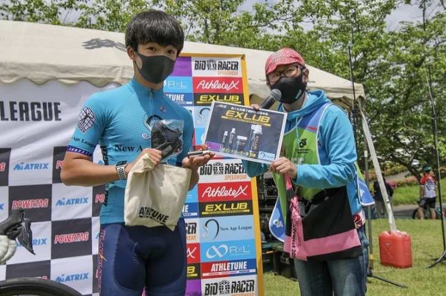 レース後のリーグポイントリーダー賞・授与式では「今日は冷静にレースを走ってスプリントを獲れて優勝できました。昨シーズン活躍した水上選手が同じチーム(ブラウ・ブリッツェン)所属なので、バトルマリンジャージを引き継げる形になって良かったです。このジャージを守りたいので、次のレースも頑張ります!」と力強いコメント。