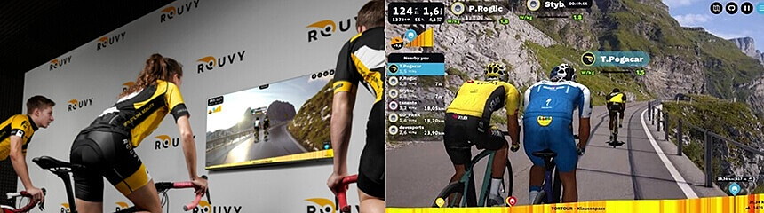 コロナ禍でも安全にサイクリングを楽しめるほか、世界中のコースを体験することができます。また、世界中のサイクリストと一緒にオンラインレースに参加することもできます。今回は「ROUVY(ルービー)」というチェコの会社が開発したアプリを活用します。