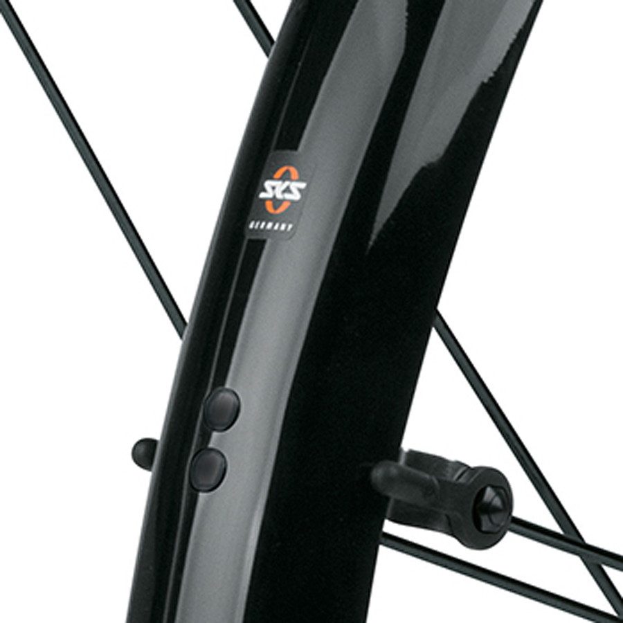 フロントには万が一スポークに枝などが引っかかってもステーがリリースされる機構を搭載しています(オートマティックステーリリース)。スマートに取付けられるブルーメルスは小径車やクロスバイクなどシティ向けの車体にオススメで、車体本来のイメージを損なわずに水はね泥よごれをしっかりガードします。