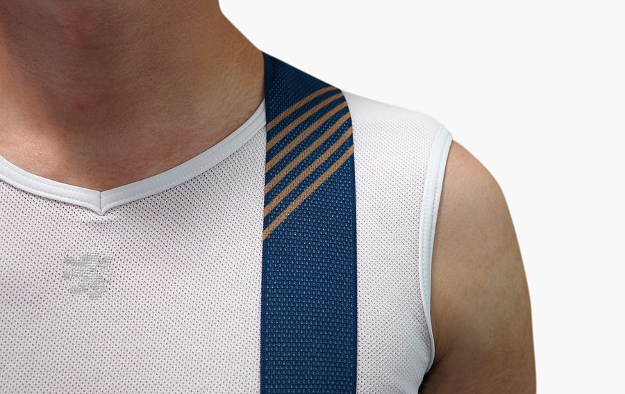 肩ひもにテープを用いた上半身の着用感も良好なモデル。ビブ部分のプリントに対応し、高いデザイン性を表現可能。肩ひもには通気性・耐久性に優れたテープを採用。トップスウエアの下でゴロつくことなく体にフィットします。