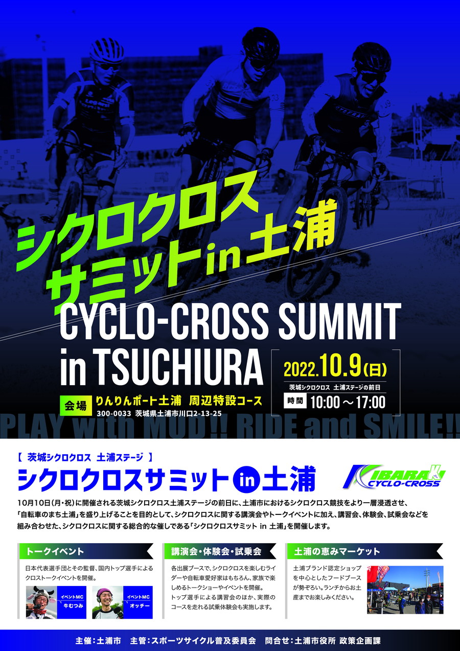 競技大会前日の10月9日には、「シクロクロスサミット in 土浦」と題する、全国でも珍しいシクロクロスの名を冠した自治体主催の祭典が開催される。