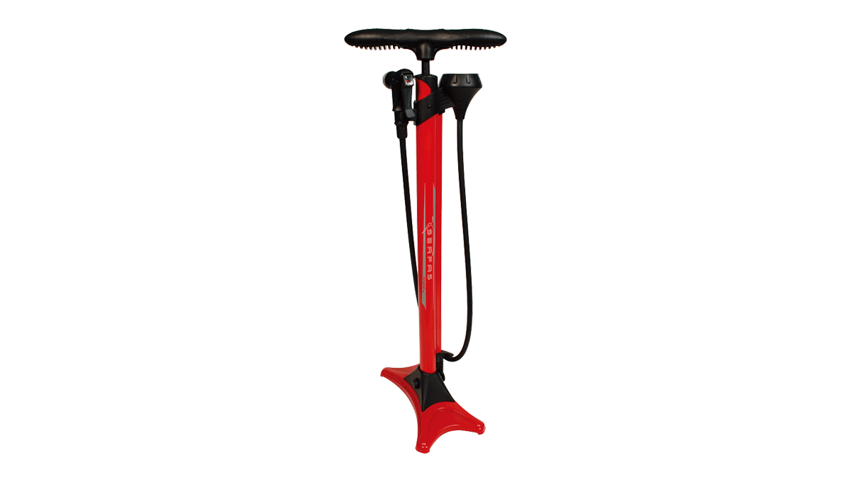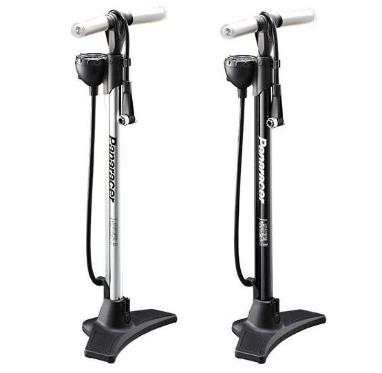 直径3.5インチの見やすい大型の空気圧計を装備したフロアポンプ。仏式と米式のバルブに対応しています。ベース部分の面積が広く安定しています。
